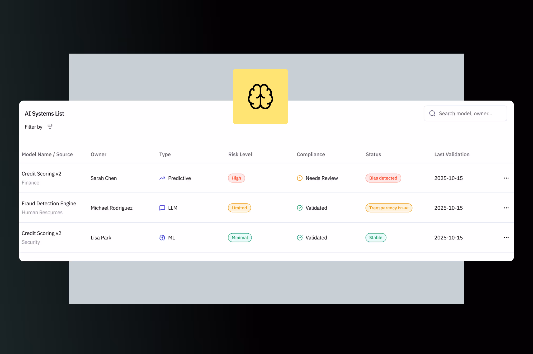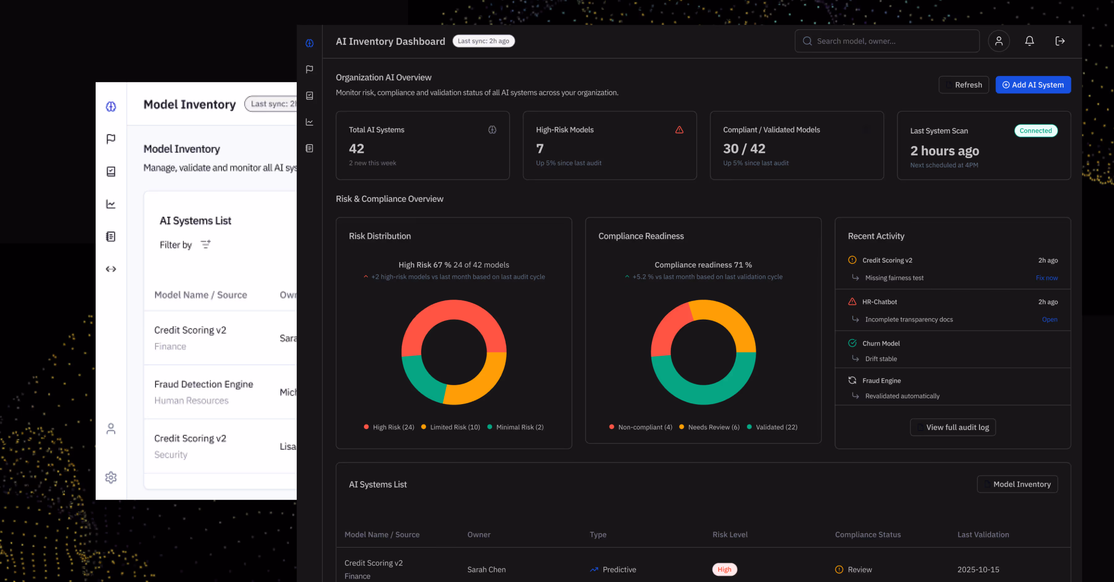 - AI Inventory: mapped list of models, use cases and risk levels.